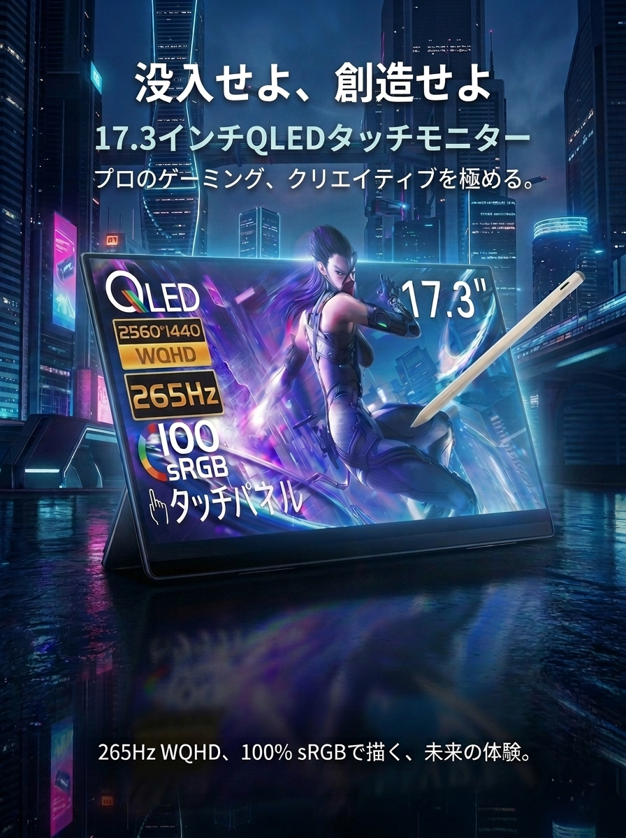 17.3インチ タッチペン対応 2560×1440 265Hz RQHG-173PW