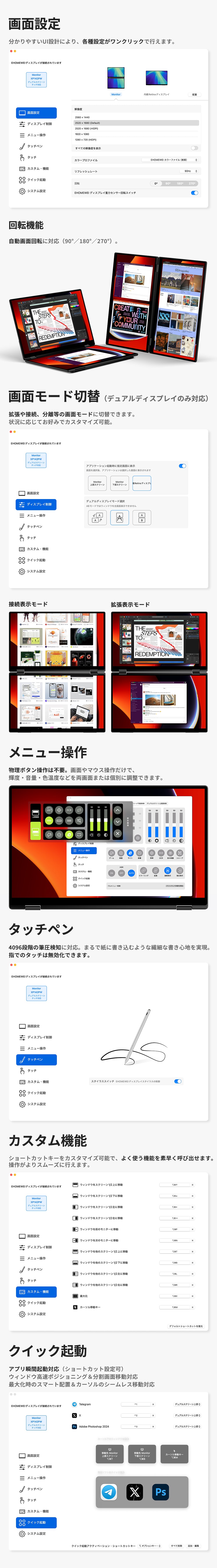 本ソフトウェアをご利用いただくことで、MacOSに対する筆圧検知や、画面モード切替が簡単に行えます。
