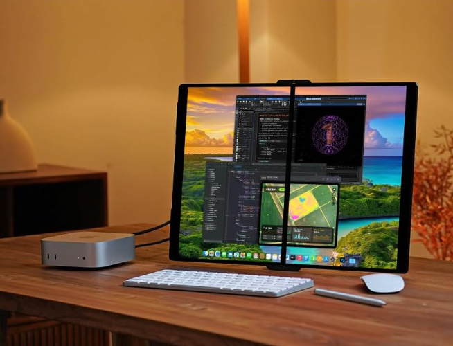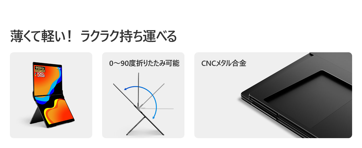 厚さわずか5mm、最大90°まで角度調整できるスタンド付き。コードが邪魔にならない設計で、デスク周りもすっきり整います。